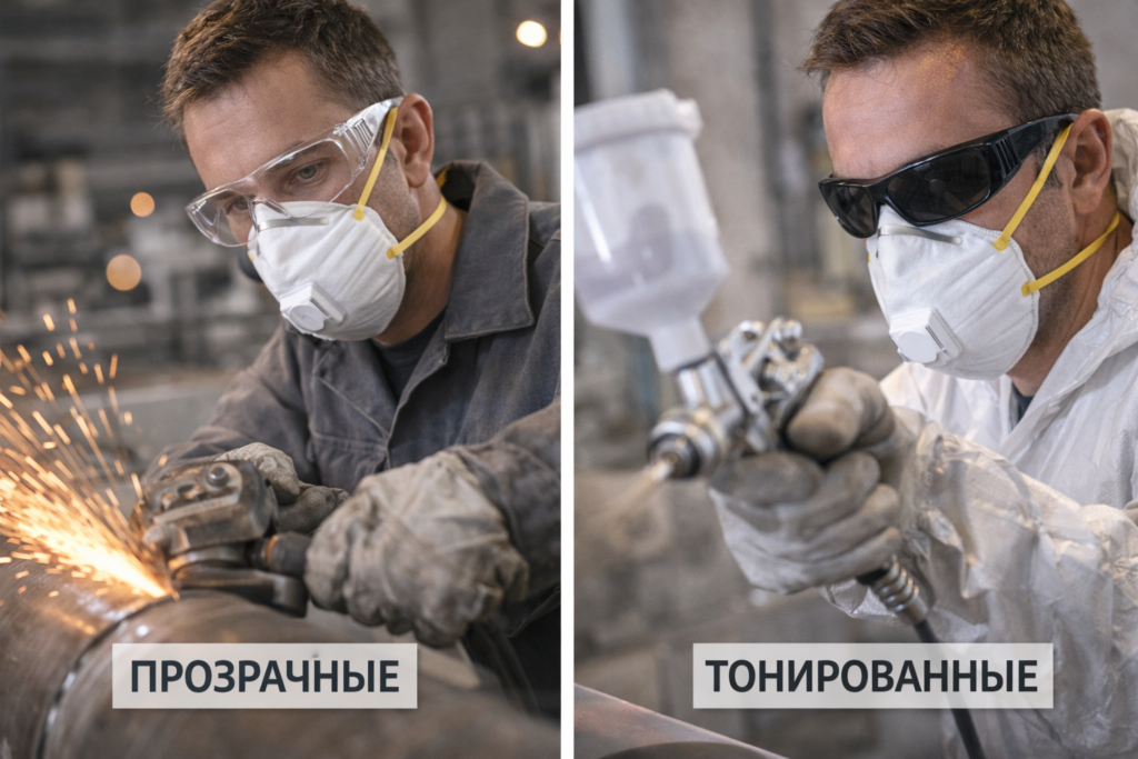 Защитные очки: прозрачные vs тонированные — для резки, шлифовки, покраски